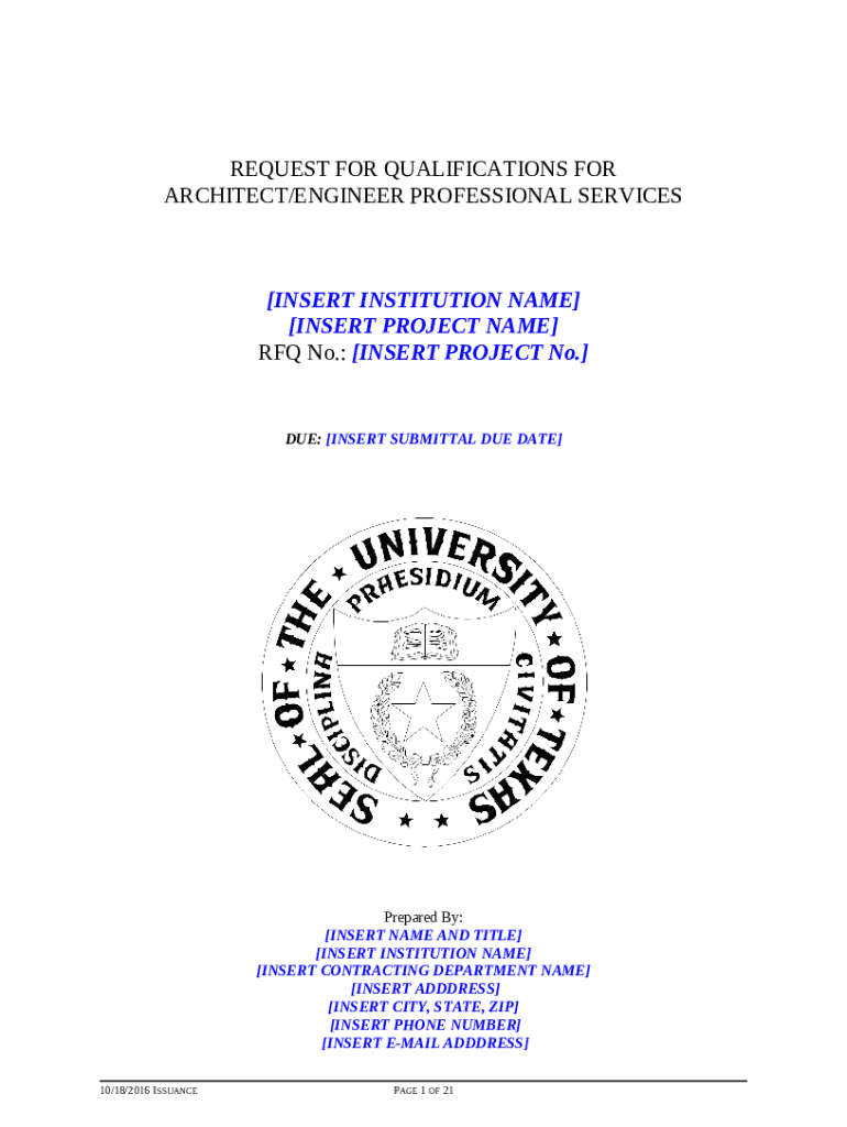 Instructions for the form Request for Qualifications for Architect/engineer Professional Services