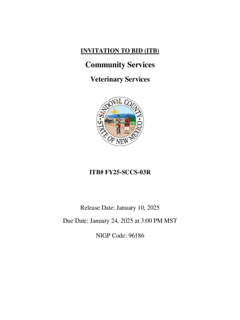 Sandoval County Board of County Commissioners is accepting sealed bids to establish multi-year pricing agreement(s) for veterinary services as part of the Community Services Department. The bid opening