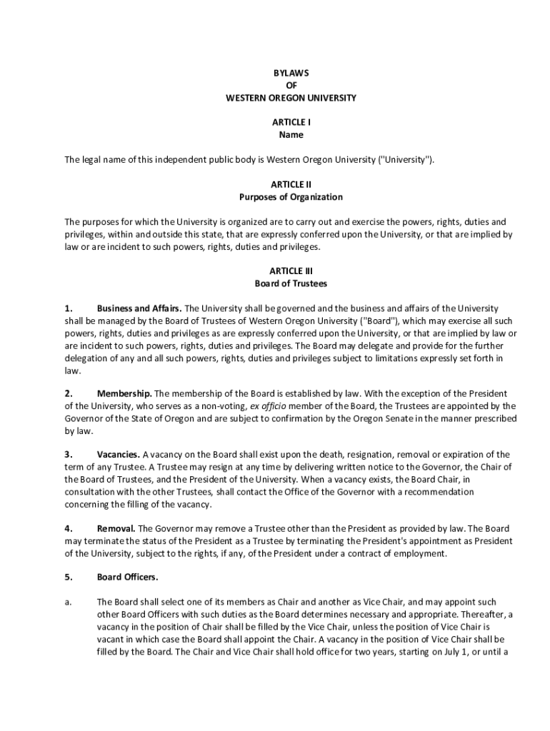 Get the free Bylaws of Western Oregon University