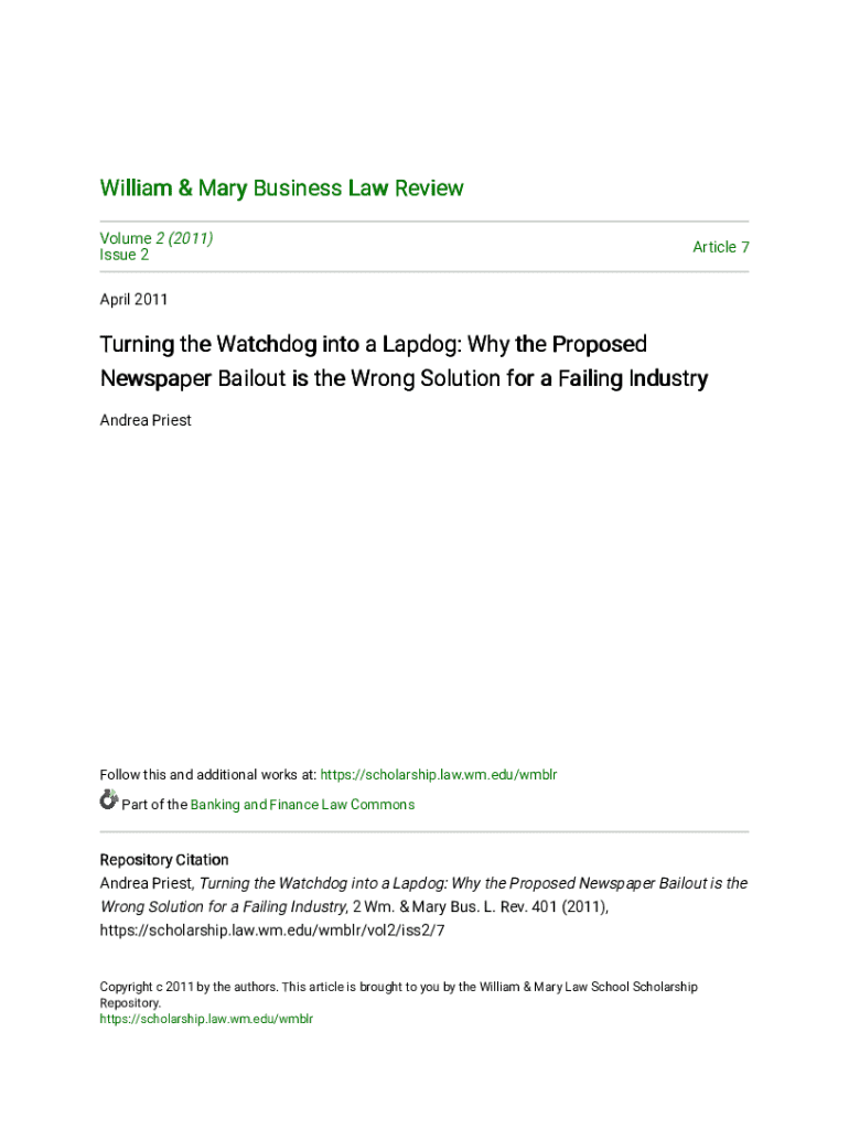 Get the free William & Mary Business Law Review - scholarship law wm
