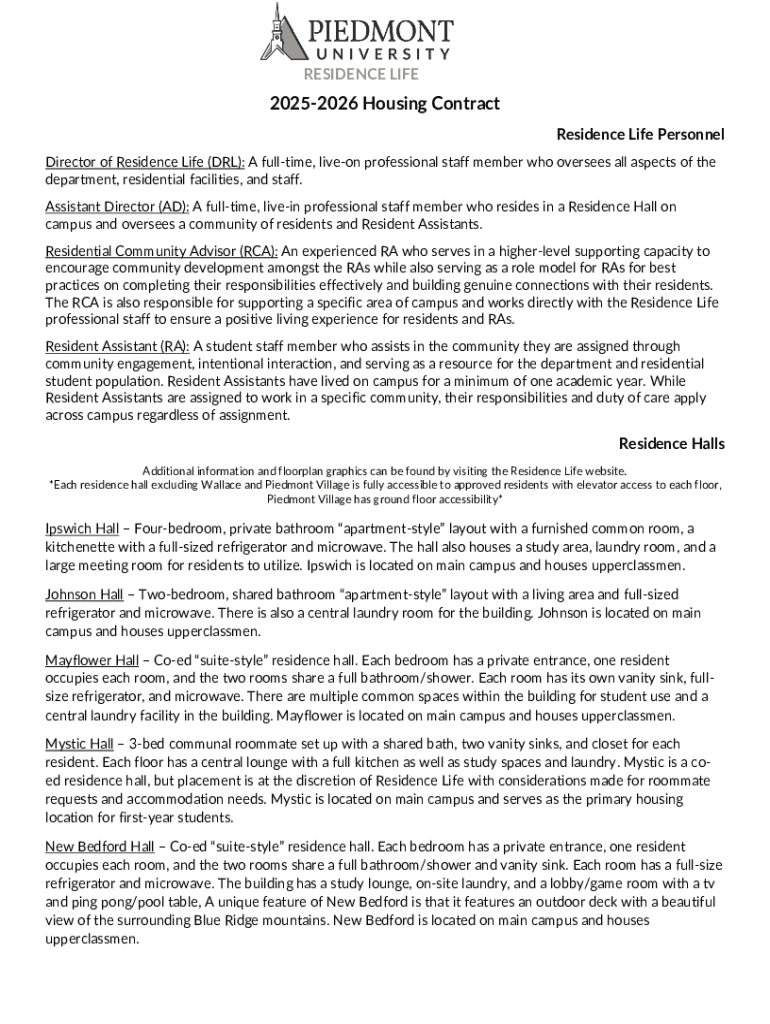 Get the free 2025-2026 Housing Contract