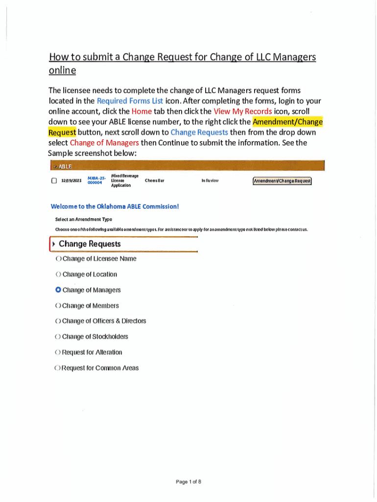 Get the free How to submit a Change Request for Change of LLC Managers