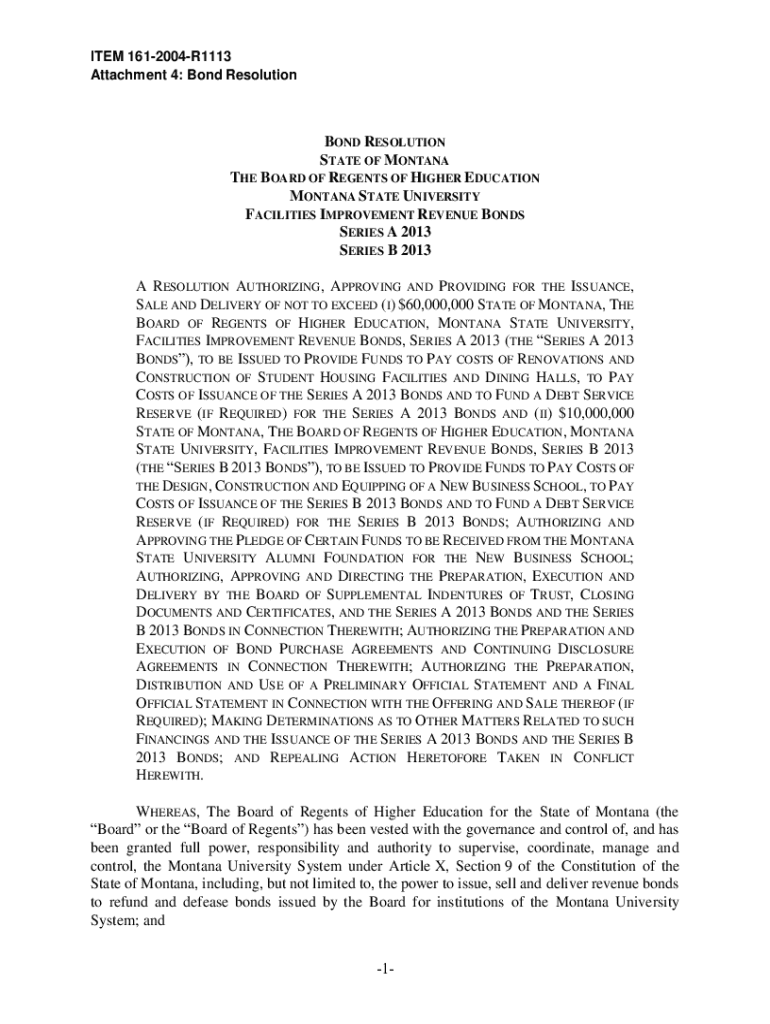 A resolution authorizing the issuance, sale, and delivery of revenue bonds for renovations and construction at Montana State University.