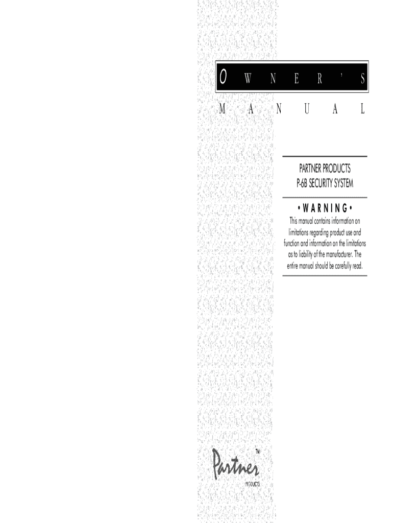 O MW ANE NR U AS LPARTNER PRODUCTS P6B SECURITY SYSTEM W A R N I N G This manual contains information on limitations regarding product use and function and information on the limitations as to liability