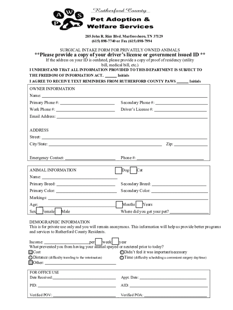 Instructions for completing spay/neuter application: All applicable forms must be submitted prior to the surgery appointment being scheduled. o o oComplete spay/neuter application 1 application per