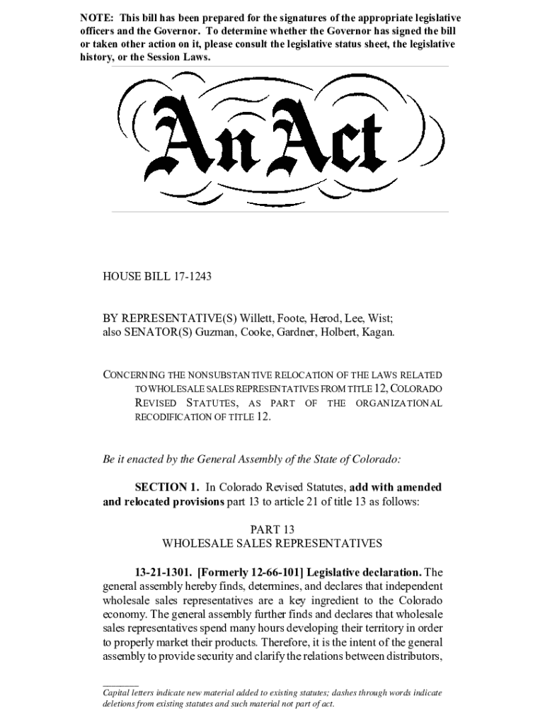 Get the free House Bill 17-1243