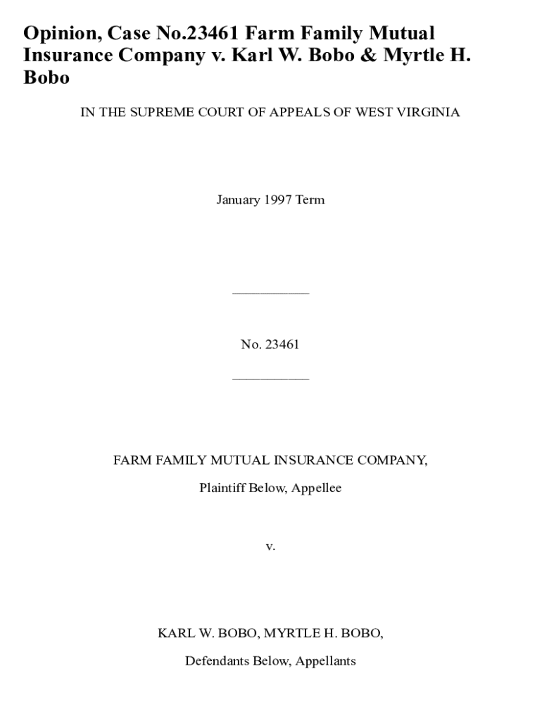 Get the free Opinion, Case No.23461 Farm Family Mutual Insurance Company V. Karl W. Bobo & Myrtle...
