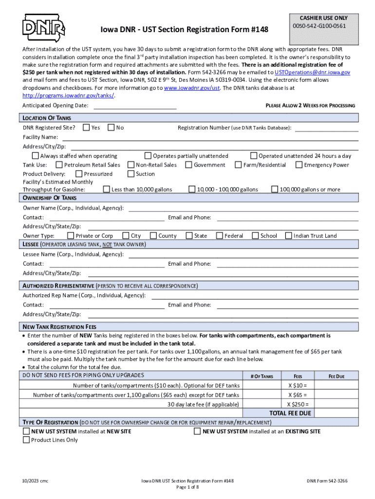 Get the free Iowa Dnr - Ust Section Registration Form #148