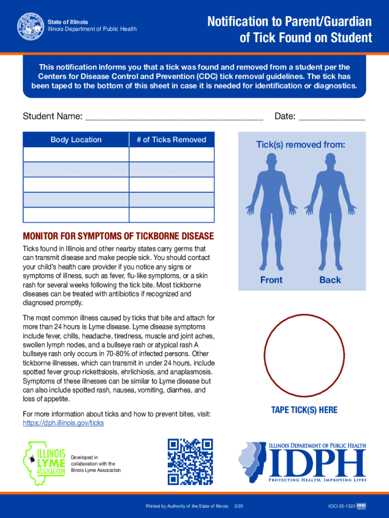 Get the free Notification to Parent/guardian of Tick Found on Student