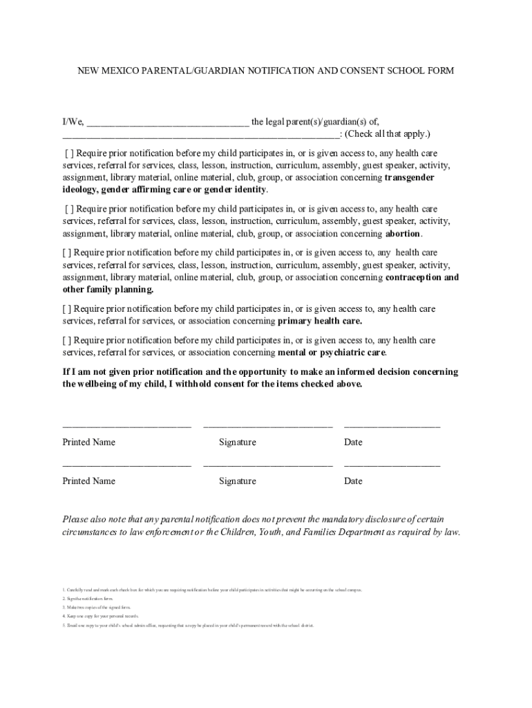 Get the free New Mexico Parental/guardian Notification and Consent School Form