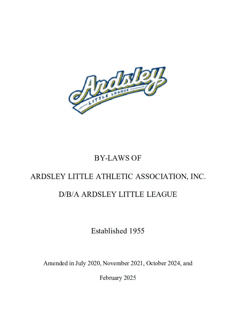 These bylaws set forth the local operational rules of the Ardsley Little Athletic Association, Inc. d/b/a Ardsley Little League. The bylaws cover various articles, including general league policies,