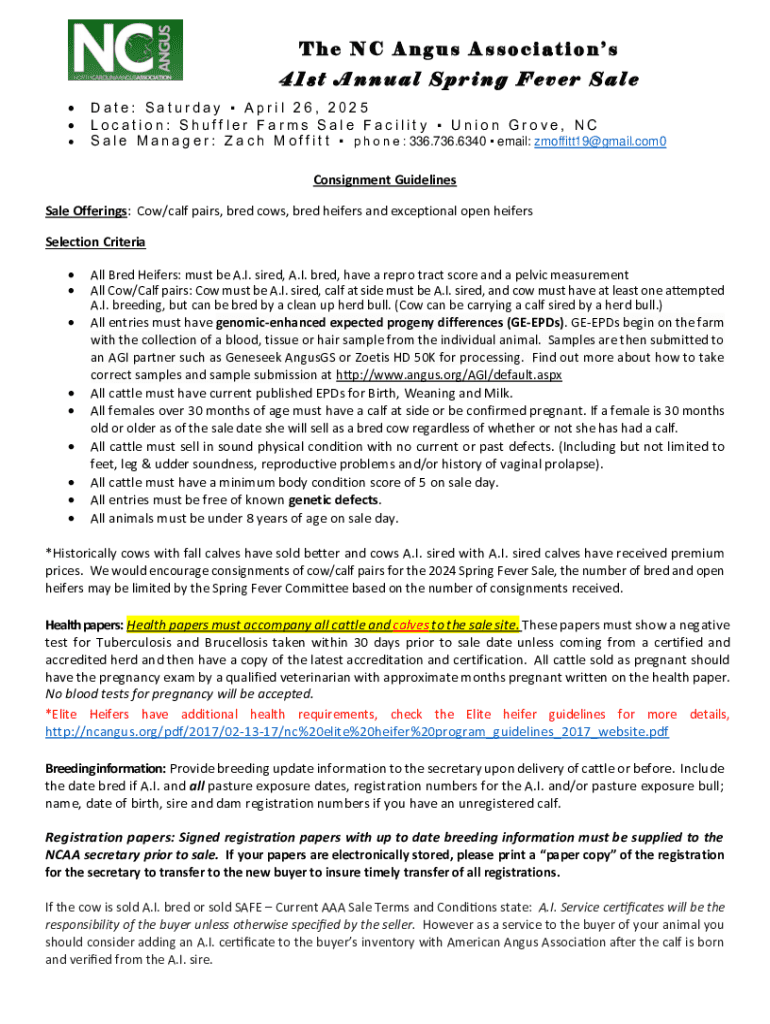 Get the free Nc Angus Association Spring Fever Sale 2025 Nomination Form