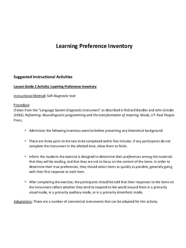 Get, Create, Make and Sign learning preference inventory
