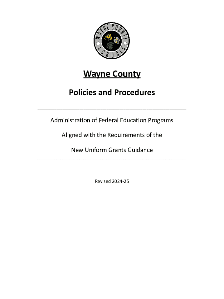 Wayne County Policies and Procedures ___Administration of Federal Education Programs Aligned with the Requirements of the New Uniform Grants Guidance ___Revised 202425Table of Contents I.Introduction1II.