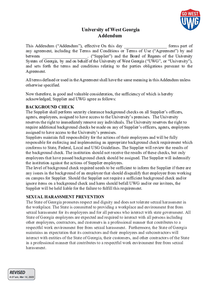 This Addendum forms part of any agreement between the Supplier and the Board of Regents of the University System of Georgia, delineating terms related to security clearance background checks, sexual