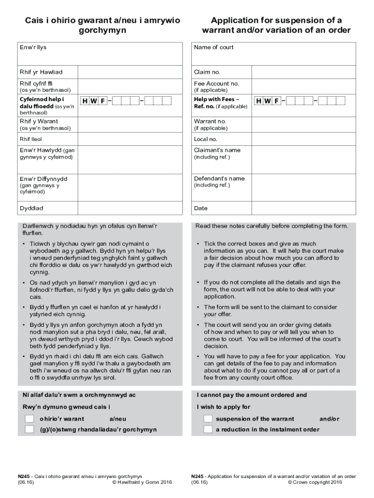 Get the free N245 - Cais I Ohirio Gwarant a/neu I Amrywio Gorchymyn