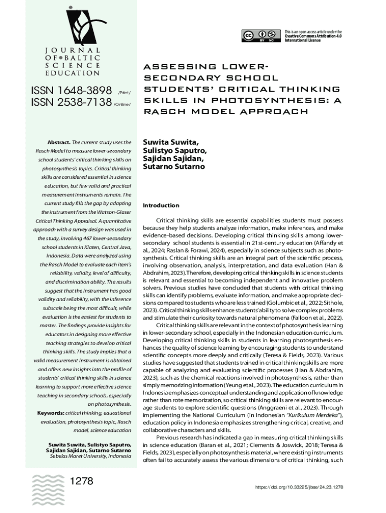This is an open access article under the Creative Commons Attribution 4.0 International LicenseISSN 16483898 ISSN 25387138/Print/ /Online/Abstract. The current study uses the Rasch Model to measure