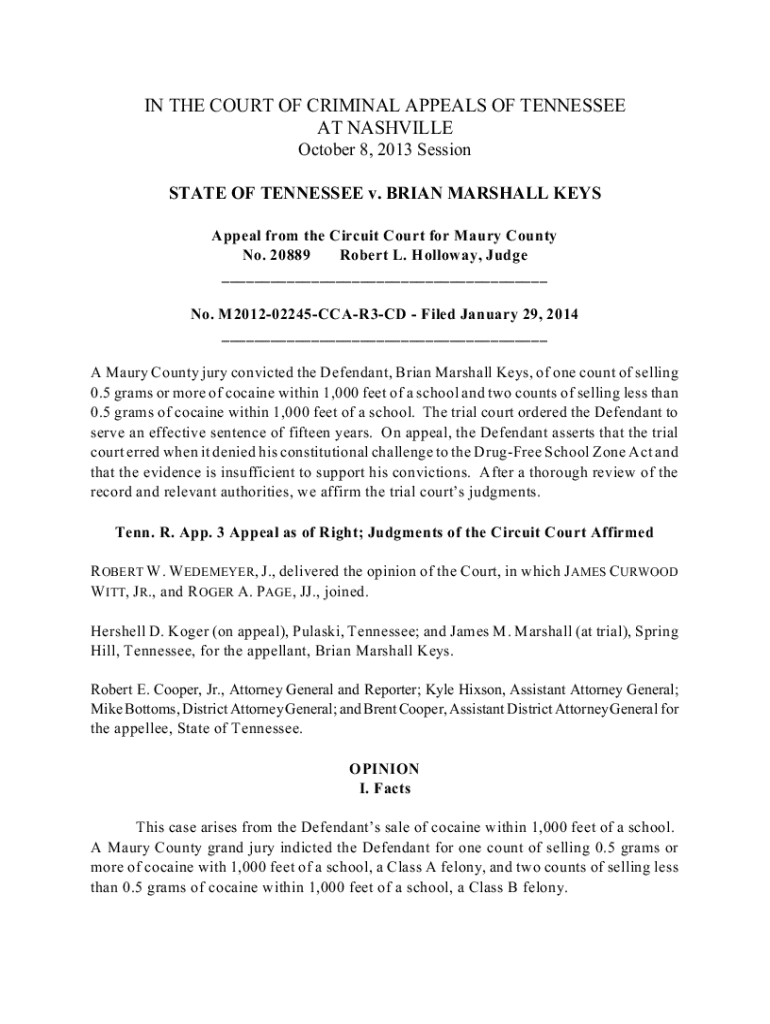 IN THE COURT OF CRIMINAL APPEALS OF TENNESSEE AT NASHVILLE October 8, 2013 Session STATE OF TENNESSEE v. BRIAN MARSHALL KEYS Appeal from the Circuit Court for Maury County No. 20889 Robert L. Holloway,