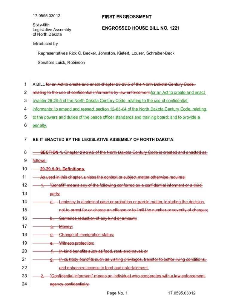 This document discusses the use of confidential informants by law enforcement in North Dakota, including definitions, limitations on use, guidelines for training, and reporting requirements. It aims
