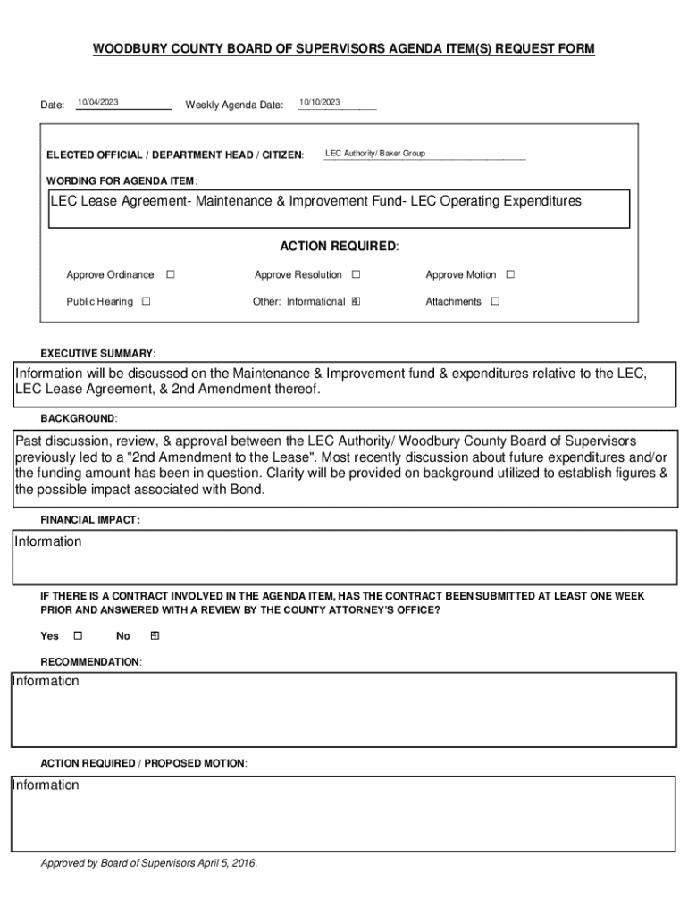 Get the free Woodbury County Board of Supervisors Agenda Item(s) Request Form