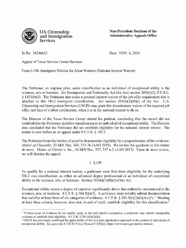 Get the free Non-precedent Decision of the Administrative Appeals Office