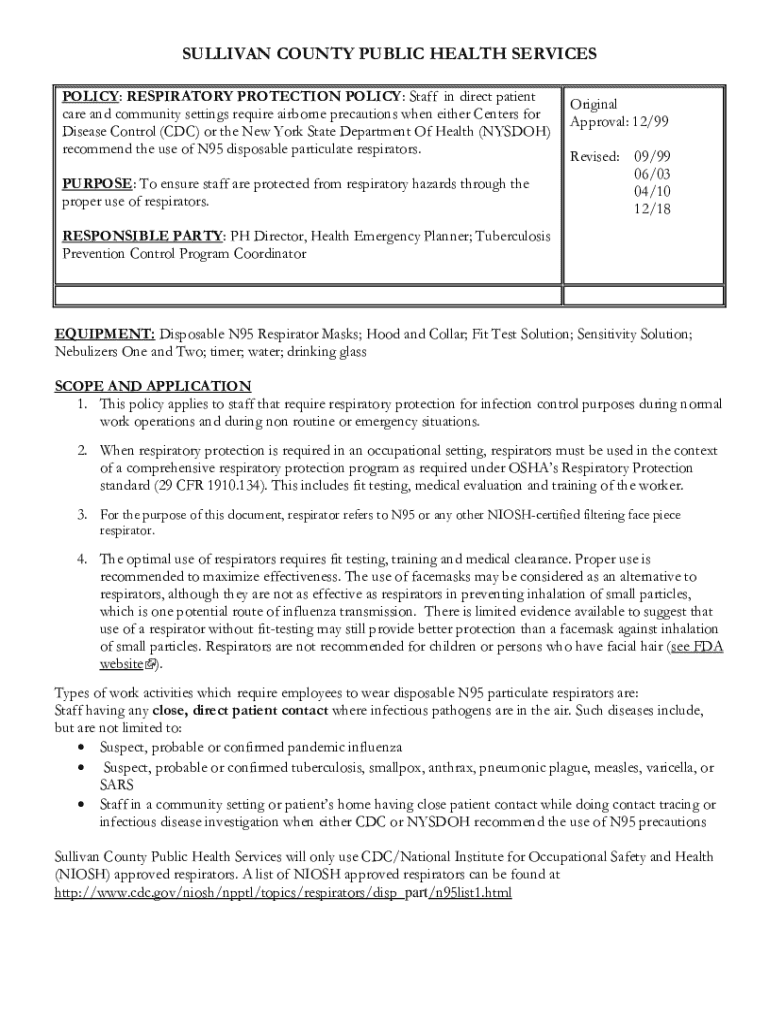 Get the free Respiratory Protection Policy