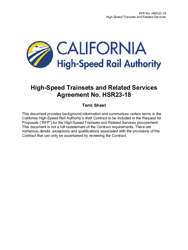 Este documento proporciona información de fondo y resume ciertos términos en el contrato del borrador de la Autoridad del Ferrocarril de Alta Velocidad de California para la adquisición de trenes