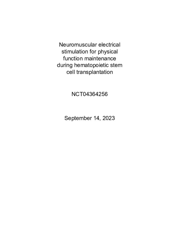 Neuromuscular electrical stimulation for physical function maintenance during hematopoietic stem cell transplantation NCT04364256September 14, 2023VA Puget Sound IRB 1 Effective Date:September 20,