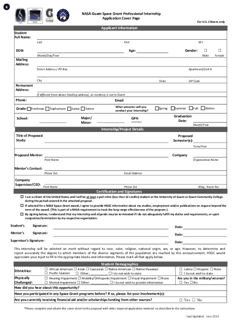 Get the free Nasa Guam Space Grant Professional Internship Application