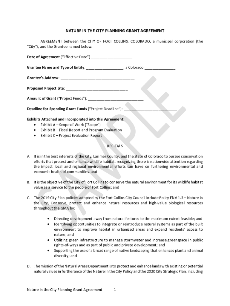 Get the free Nature in the City Planning Grant Agreement