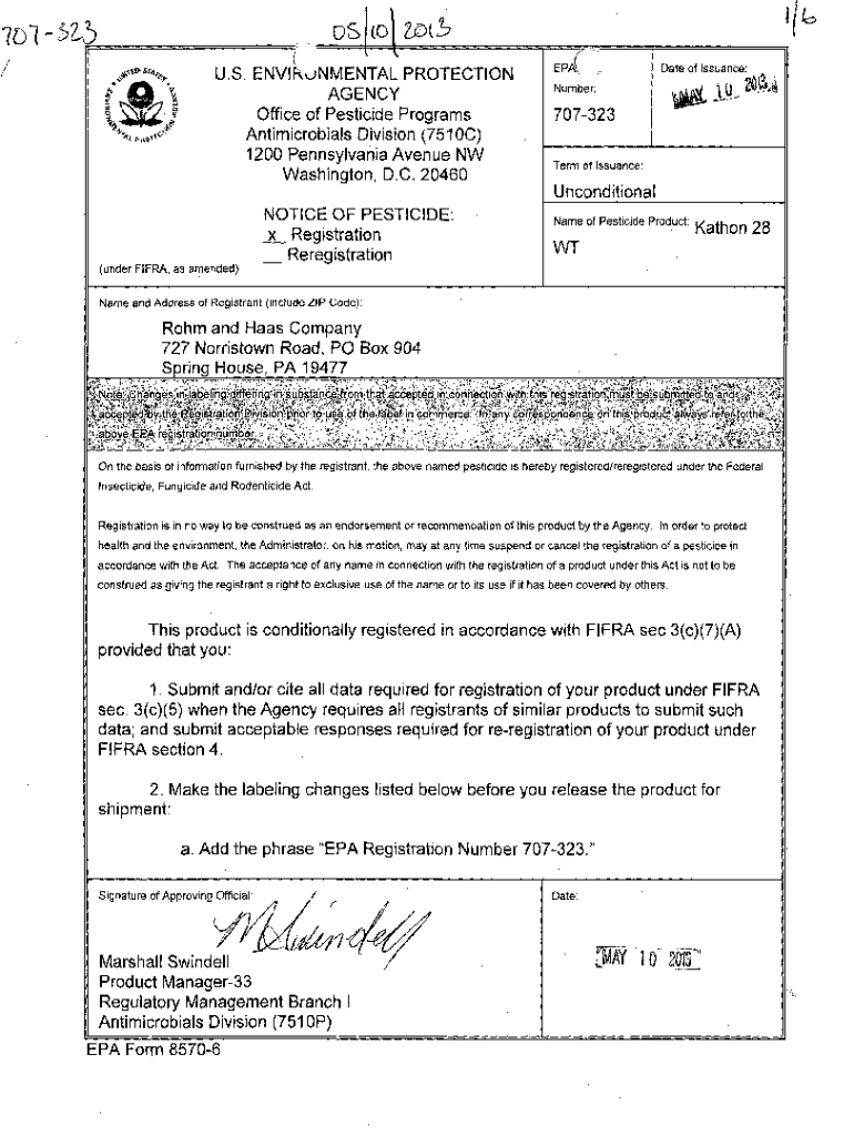 OS jjtfitSrfl,(DU.S. ENVIRONMENTAL PROTECTION AGENCY Office of Pesticide Programs Antimicrobials Division (7510C) 1200 Pennsylvania Avenue NW Washington, D.C. 20460cEPA.4, Date of Issuance:Number: