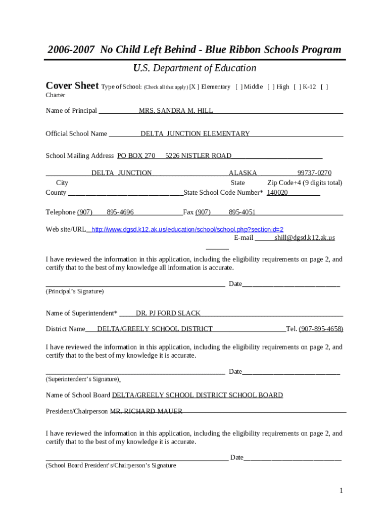 How to fill out No Child Left Behind - Blue Ribbon Schools Program