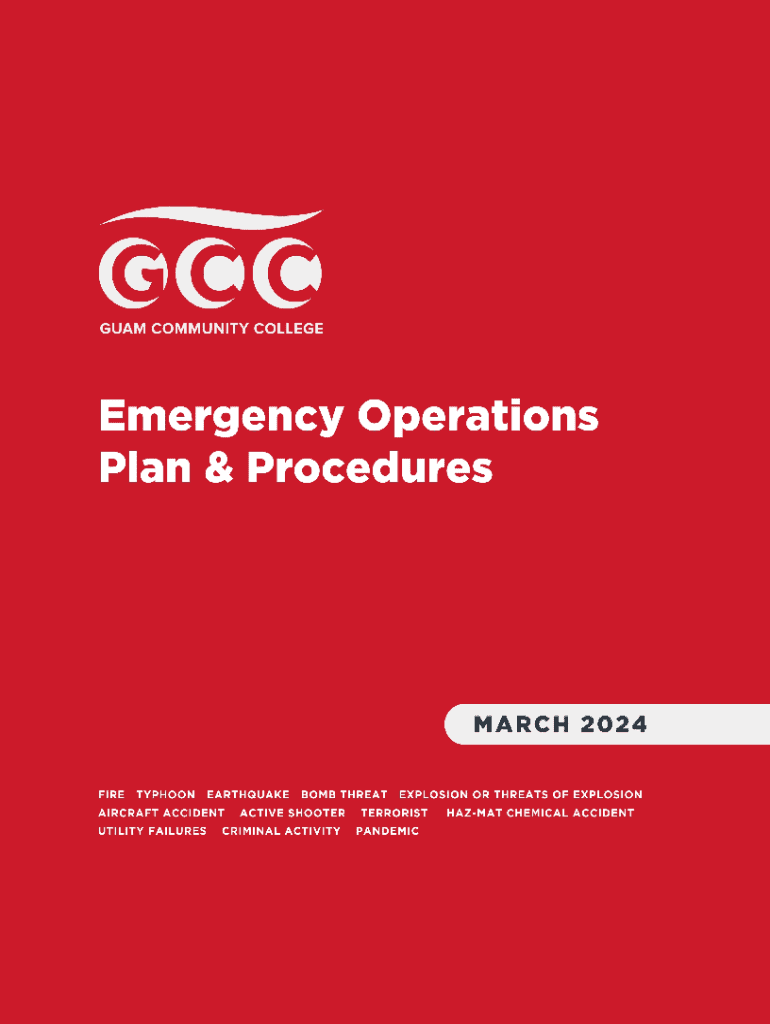 This document outlines the Guam Community College\'s Emergency Operations Plan and Procedures, providing guidelines for responding to major disasters on campus. It serves to coordinate resources for