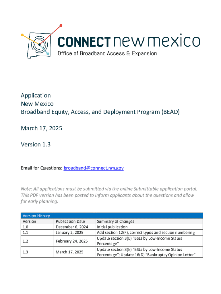 To fill out the New Mexico BEAD program, applicants must provide specific information about their proposed broadband projects, including project plans, cost estimates, and details on service areas, typically through a designated online application portal.