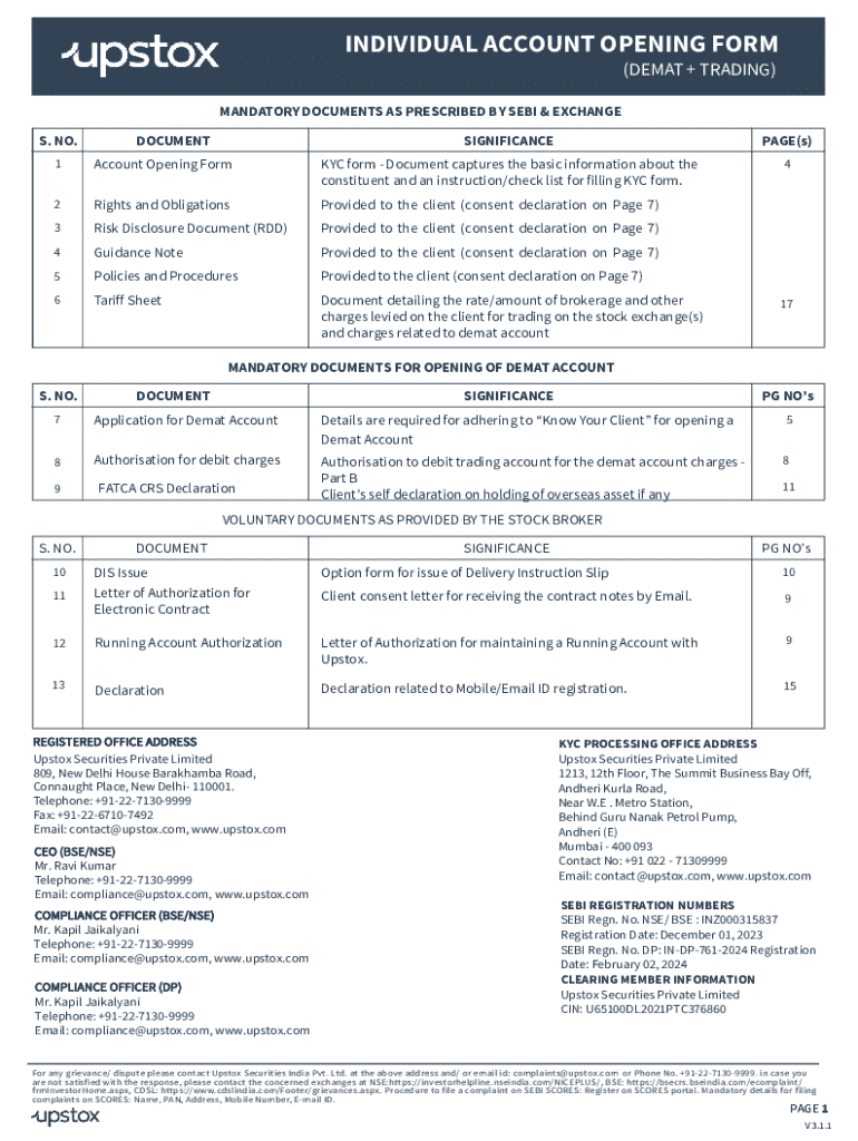 Get the free Individual Account Opening Form (demat + Trading)