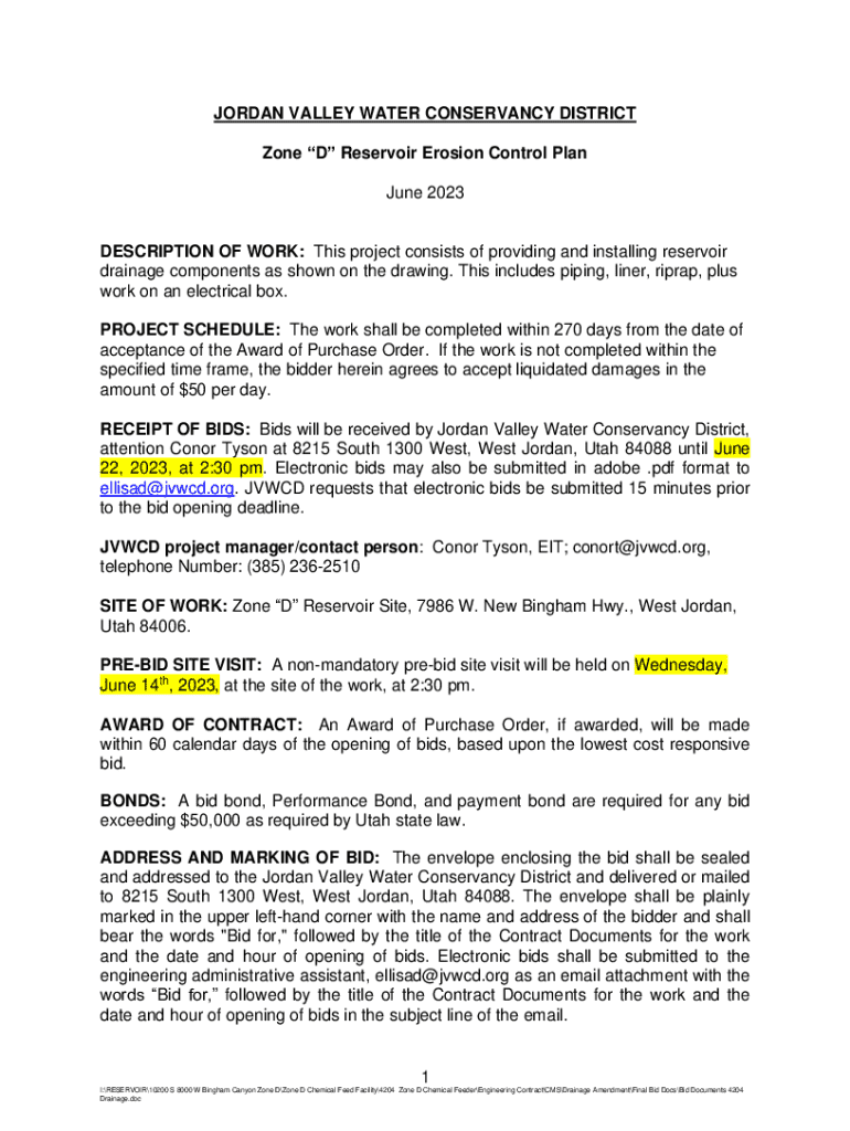Get the free Zone ‘d’ Reservoir Erosion Control Plan