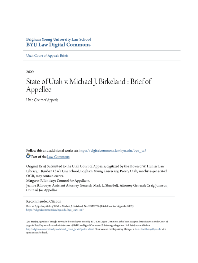 Get the free State of Utah V. Michael J. Birkeland : Brief of Appellee