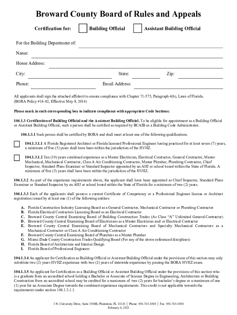 Get the free Broward County Board of Rules and Appeals Certification Application