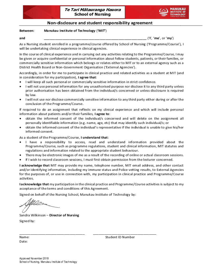 Edit your non-disclosure and student responsibility form online