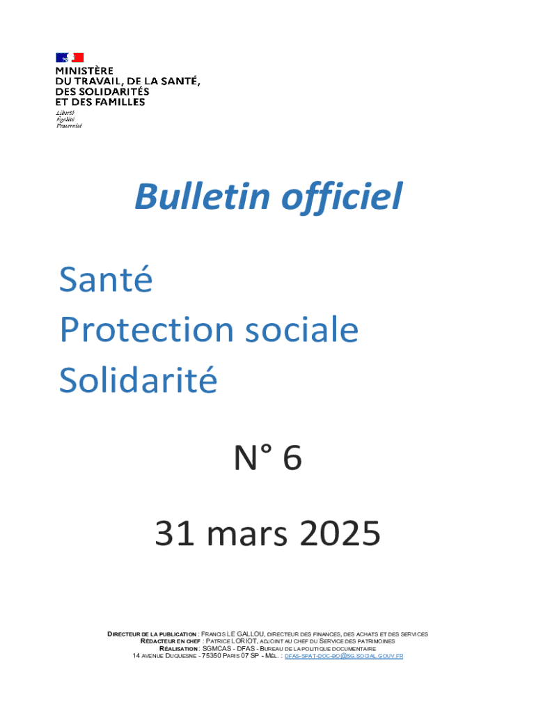 Obtenir le gratuit Bulletin Officiel Santé - Protection Sociale - Solidarité N° 2025/6