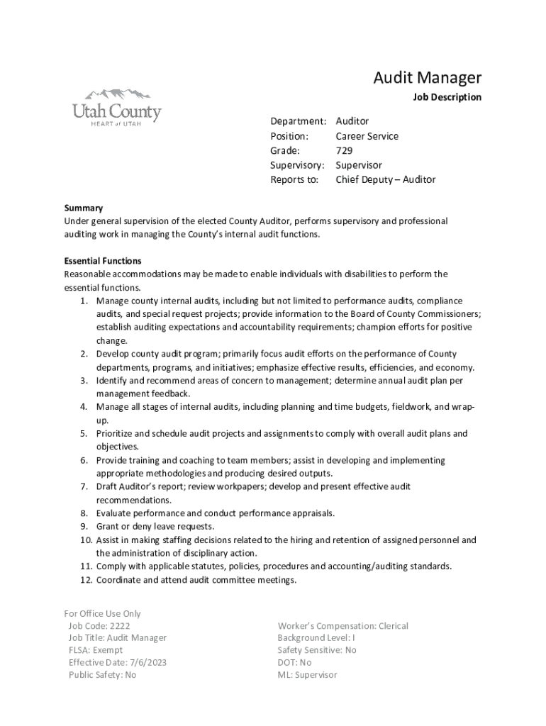 Fill out your audit manager job description online with pdfFiller!
