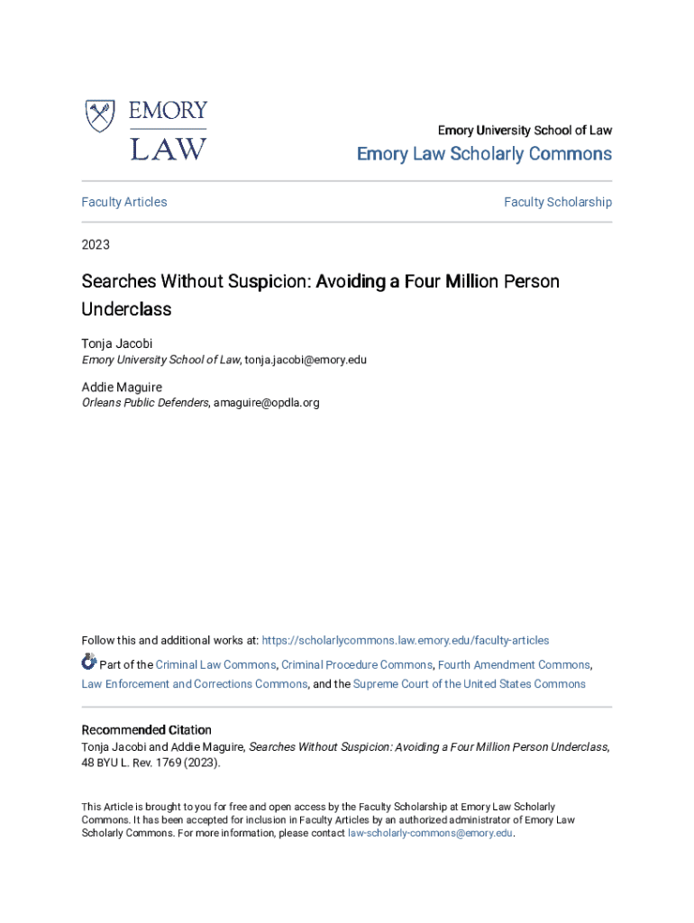 Get the free Searches Without Suspicion: Avoiding a Four Million Person Underclass
