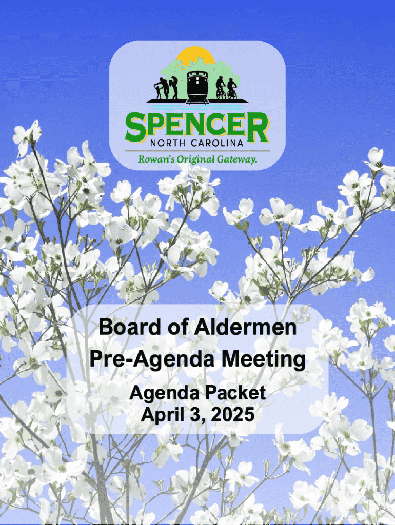 This document serves as the agenda packet for the Spencer Board of Aldermen Pre-Agenda Meeting scheduled on April 3, 2025. It outlines the structure of the meeting, which includes the call to order,
