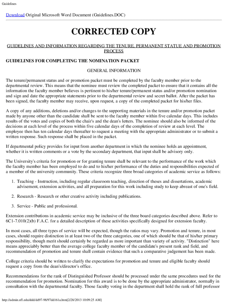 GuidelinesDownload Original Microsoft Word Document (Guidelines.DOC)CORRECTED COPY GUIDELINES AND INFORMATION REGARDING THE TENURE, PERMANENT STATUE AND PROMOTION PROCESS GUIDELINES FOR COMPLETING