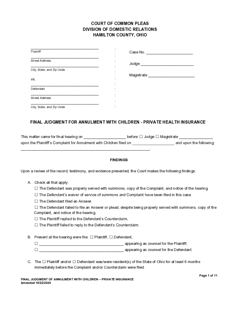Get the free Final Judgment for Annulment With Children - Private Health Insurance