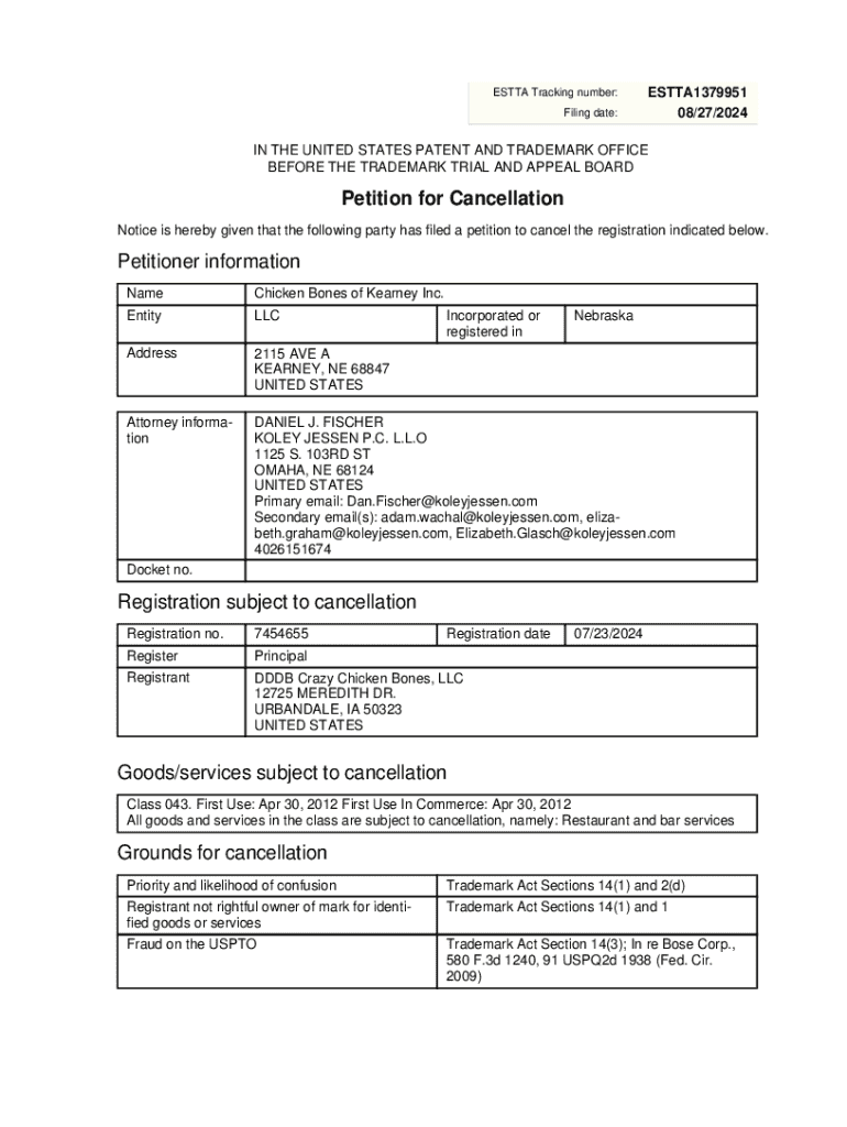 Get the free Petition for Cancellation