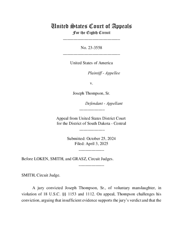 United States Court of Appeals For the Eighth Circuit ___ No. 233558 ___ United States of America lllllllllllllllllllllPlaintiff Appellee v. Joseph Thompson, Sr. lllllllllllllllllllllDefendant Appellant