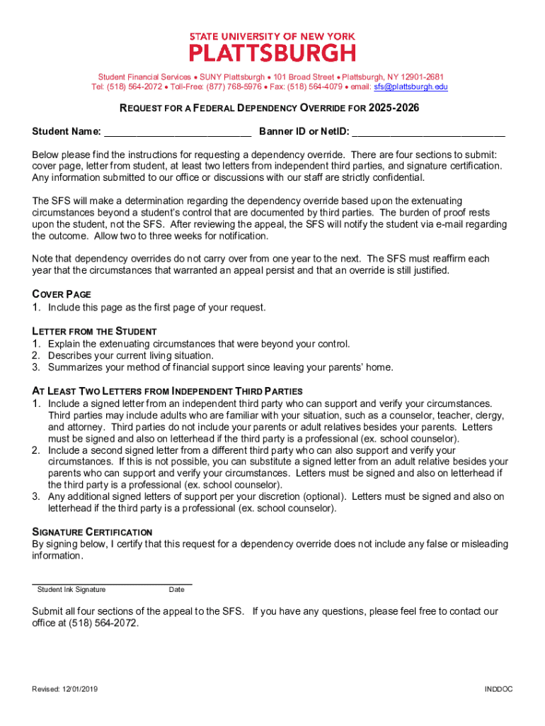 Get the free Request for a Federal Dependency Override for 2025-2026