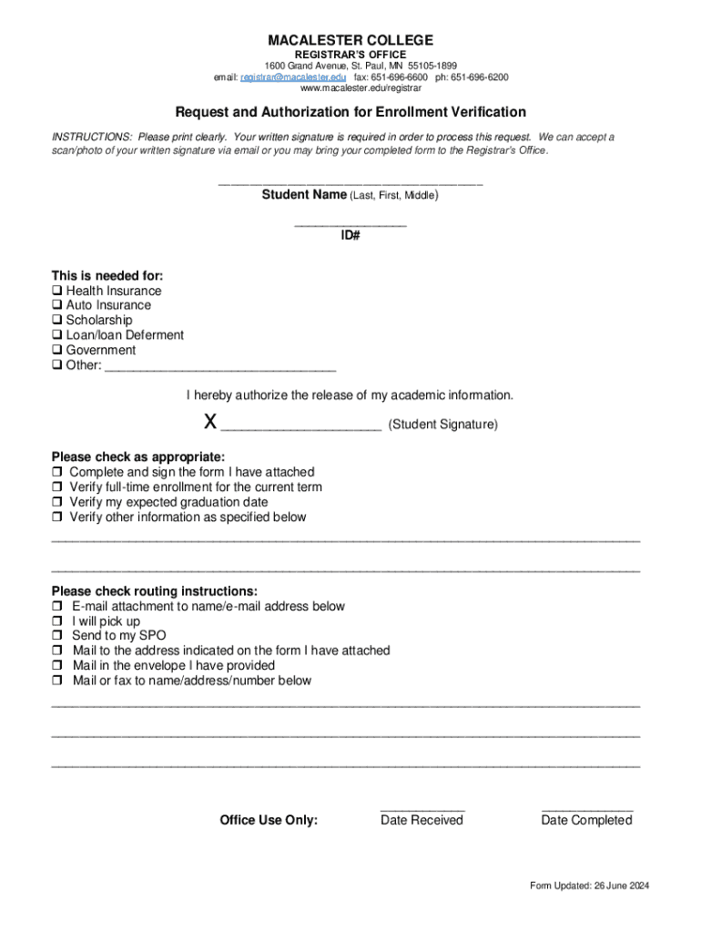 Get the free Request and Authorization for Enrollment Verification