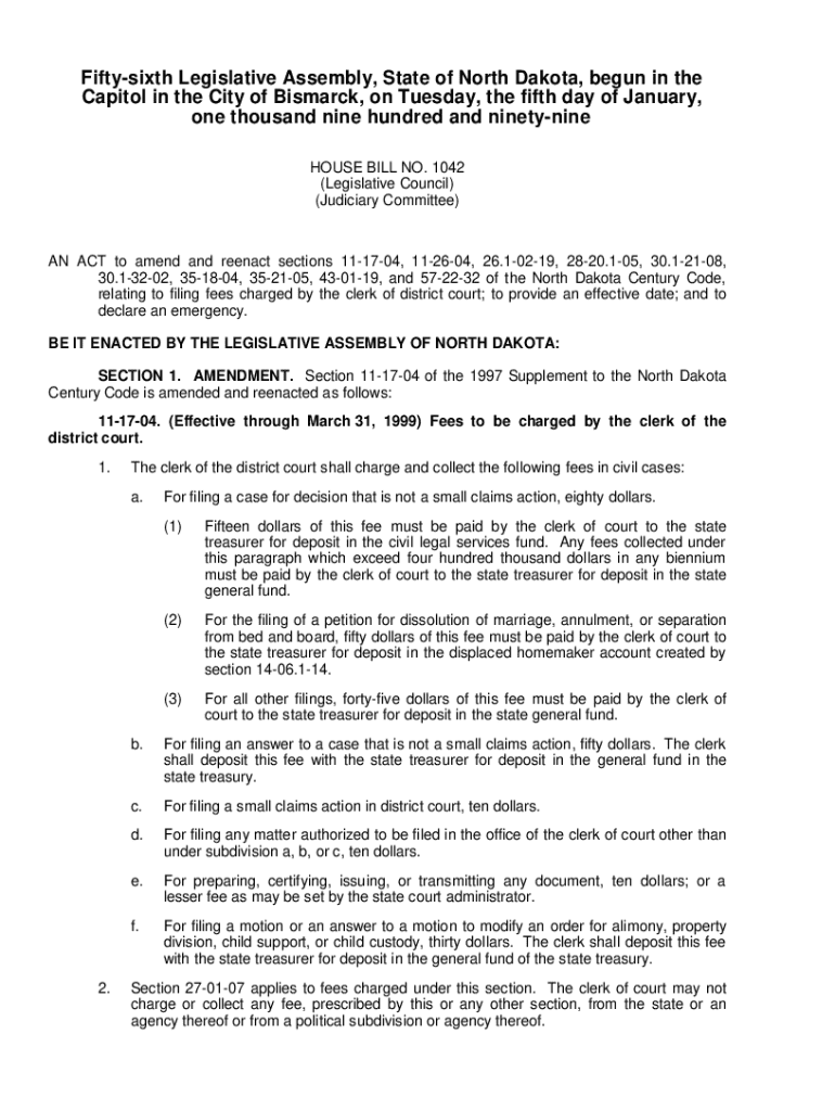 Get the free AN ACT to amend and reenact sections 11-17-04, 11-26-04, 26